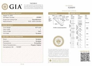Diamante GIA Redondo 0.57 carats (L/VVS1/3EXC)Disponibilidad: 1 disponibles